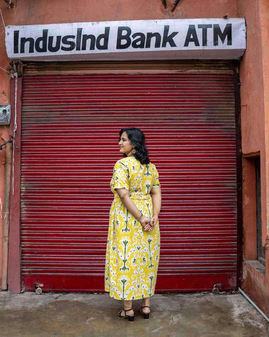 Soleil Daisy Yellow Dress – Elegant Women's Office Wear with Floral Print